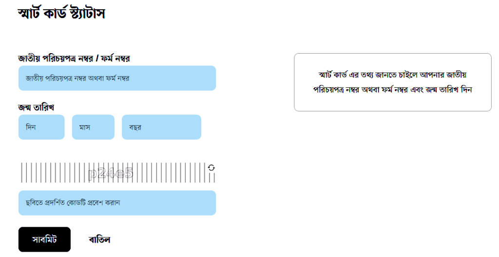ধাপ -২: অনলাইন এর মাধ্যমে স্মার্ট কার্ড স্ট্যাটাস চেক করার নিয়ম